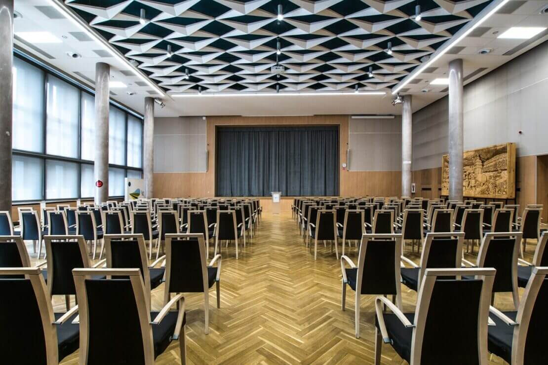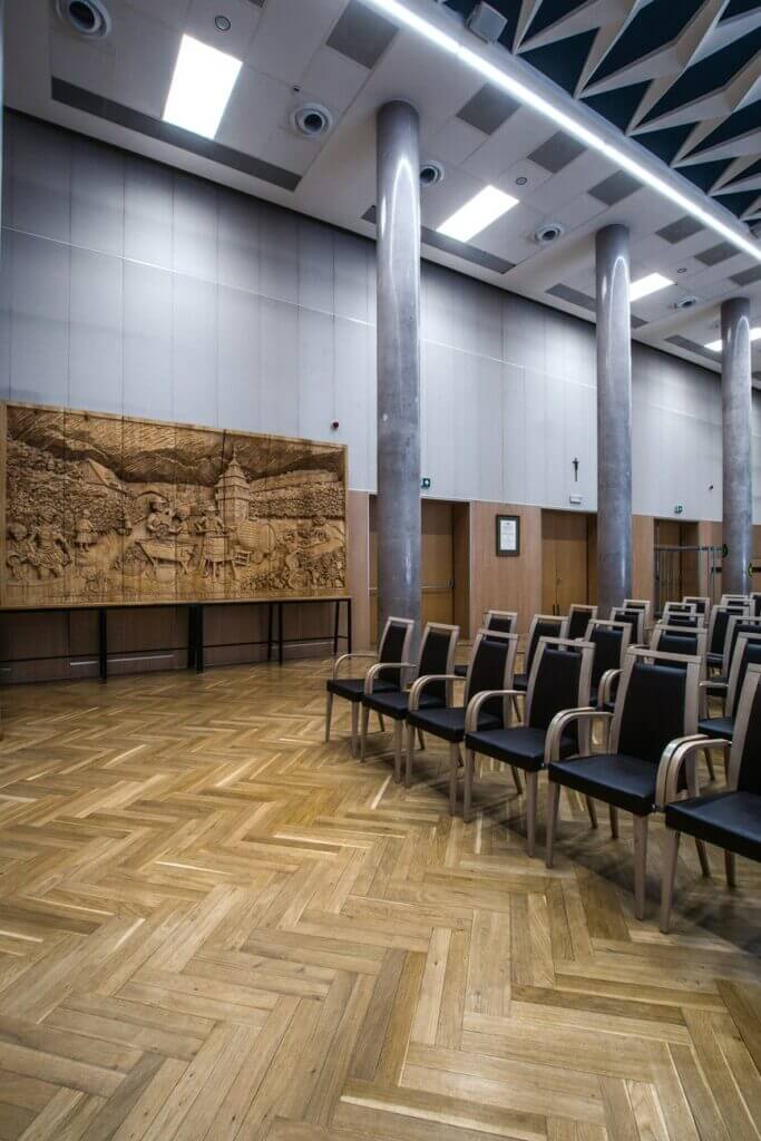 Sala Kolumnowa w Zielonej Górze, znajdująca się w siedzibie Urzędu Marszałkowskiego przy ul. Podgórnej 7, jest głównym miejscem obrad Sejmiku Województwa Lubuskiego. To reprezentacyjne miejsce, w którym radni województwa podejmują kluczowe decyzje dla regionu podczas sesji, jak również odbywają się prestiżowe konferencje i sympozja.